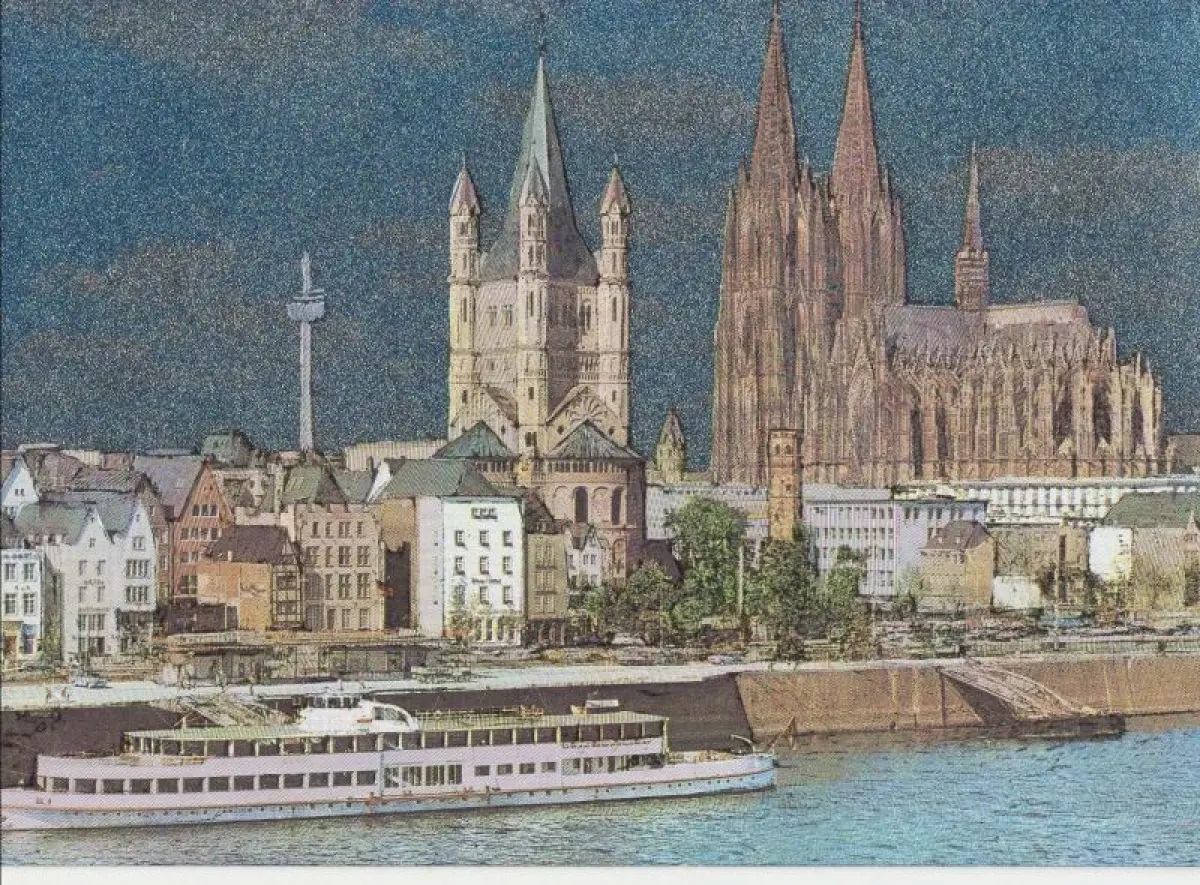Köln - Rheinufer mit Kirchen - Glanzkarte