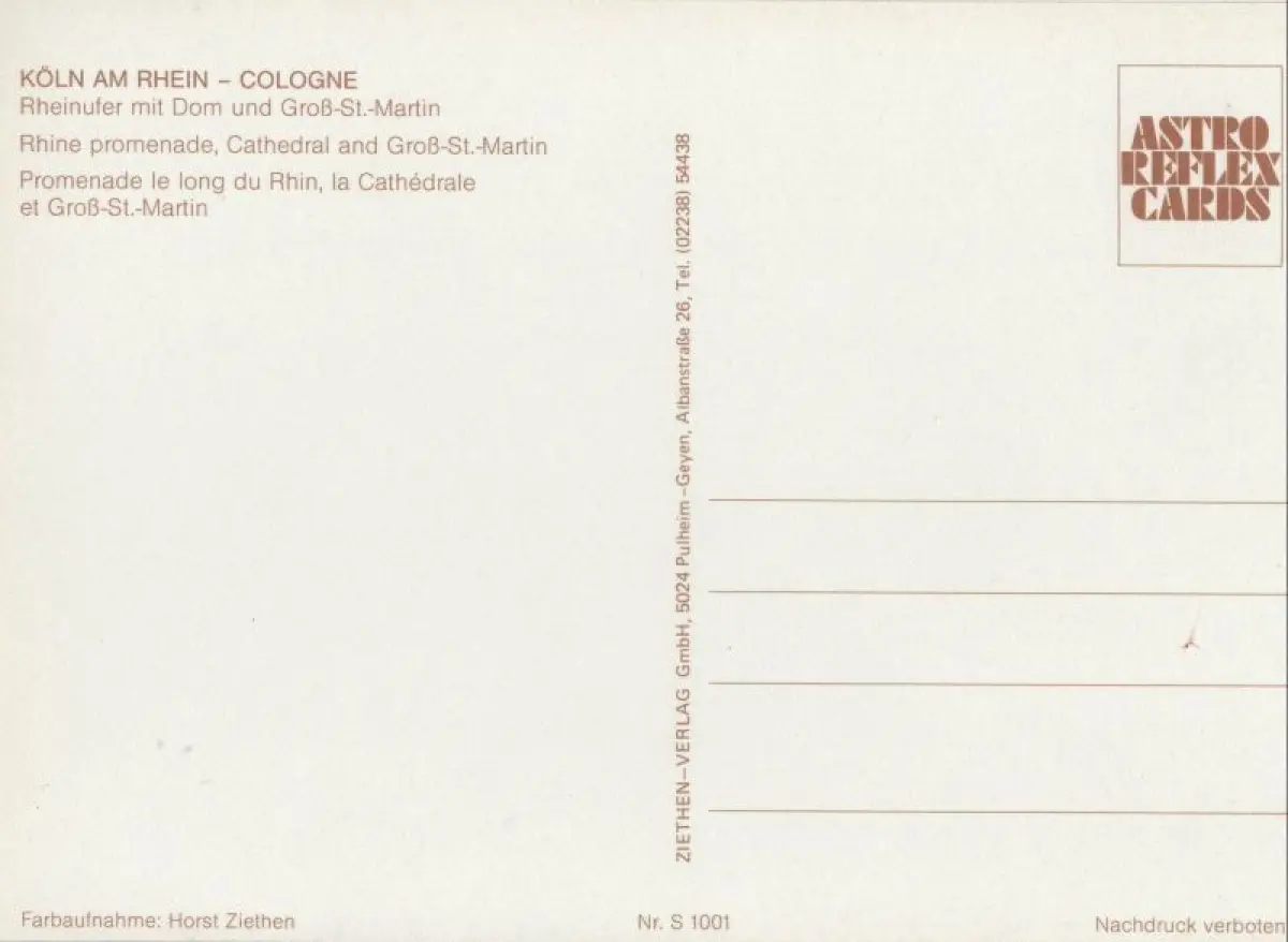 Postleitzahl:50931 (neu) / W 5000 (alt)