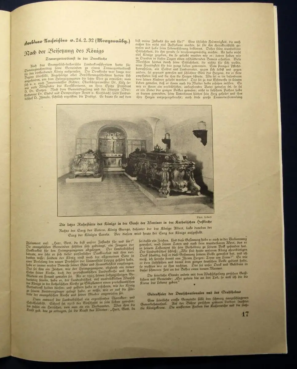 Eine Zusammenstellung der in in den Dresdner Nachrichten erschienenen Berichte über den Heimgang des Königs und seine Beisetzung in Dresden