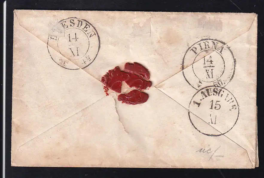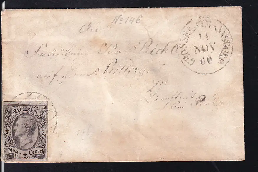 König Johann ½ Ngr. auf Brief mit undeutl. Nummernstempel 146 + K1 GROSSHARTMANNSDORF 11 NOV 60
