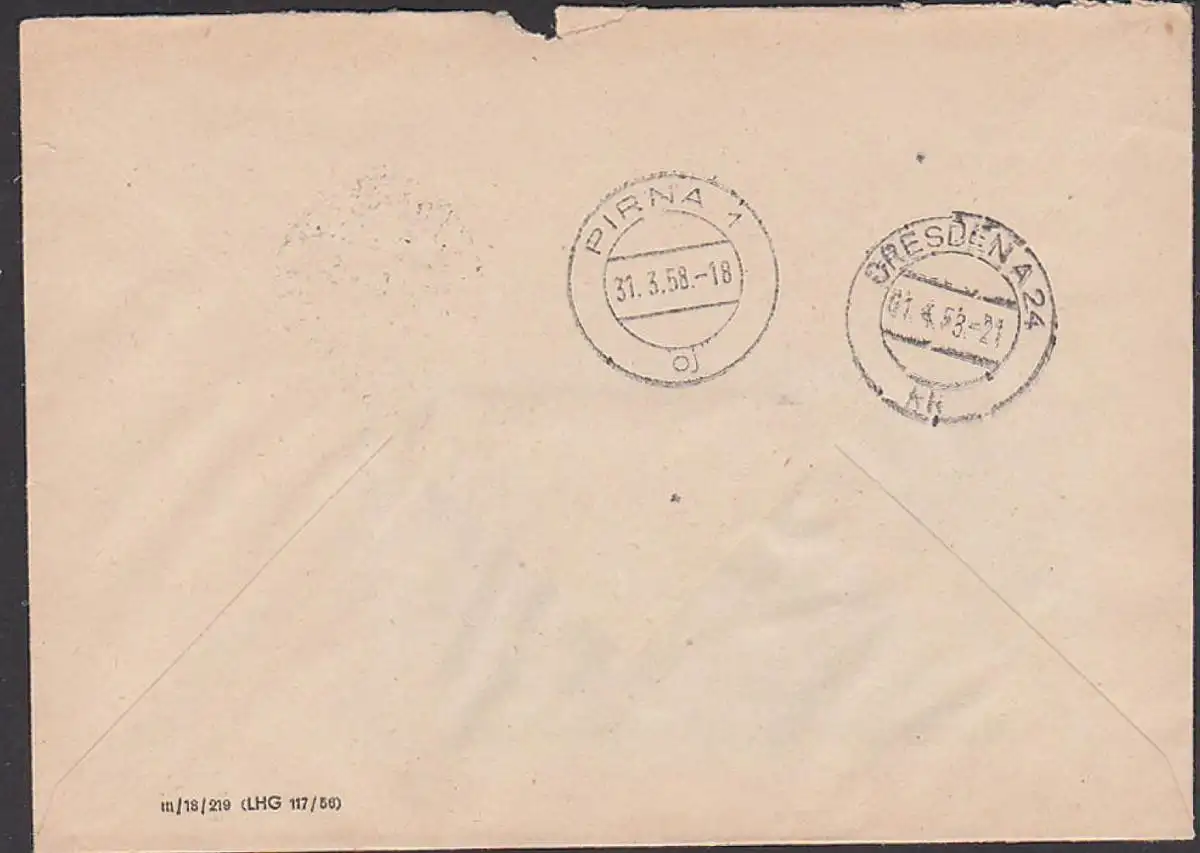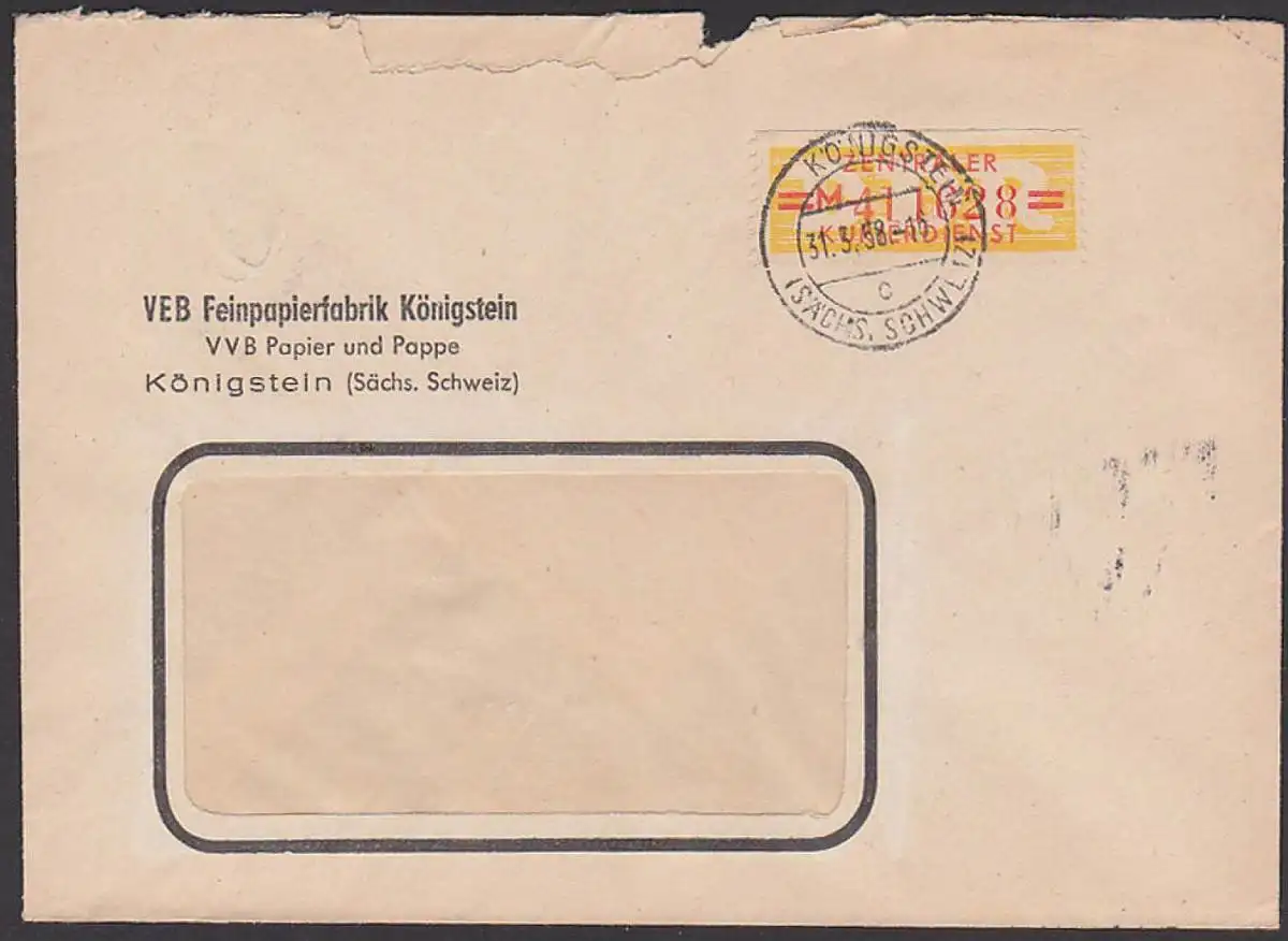 Königstein Sächsische Schweiz DDR ZKD B17M 20 Pf. Wertstreifen 31.3.58, VEB Feinpapierfabrik VVB Papier und Pappe