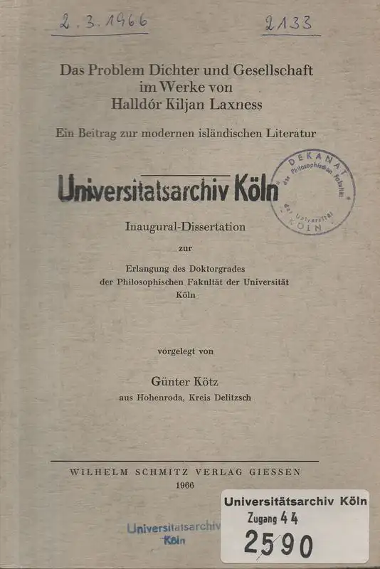 Kötz, Günter: Das Problem Dichter und Gesellschaft im Werke von Halldór Kiljan Laxness: ein Beitrag zur modernen isländischen Literatur. (Beiträge zur deutschen Philologie ; 35).