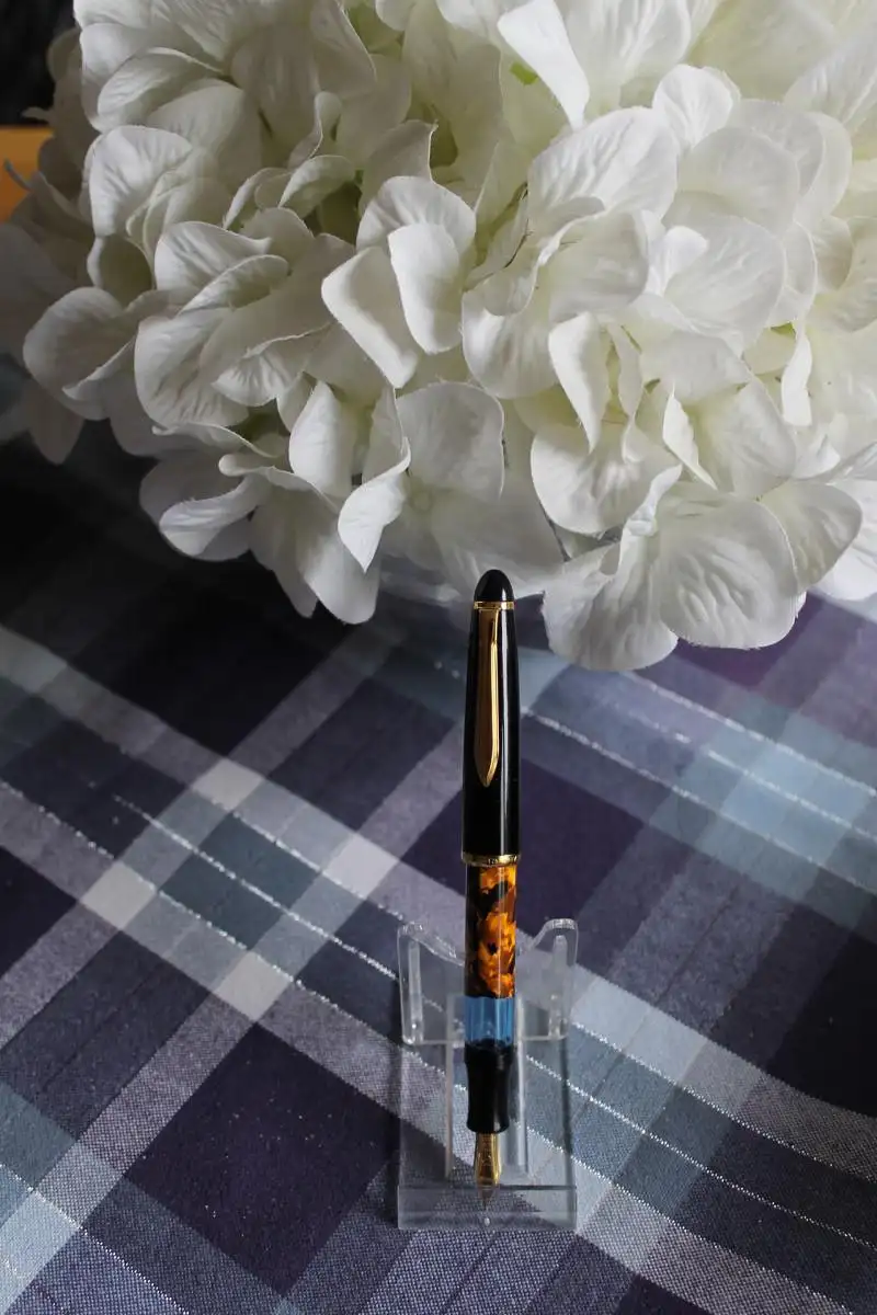 Kolbenfüllfederhalter; Nostalgischer Vintage Kolbenfüller Retro-Design, Kolbenfederhalter, neu und unbenutzt, M-Feder, braun-orange -marmoriert, in OVP