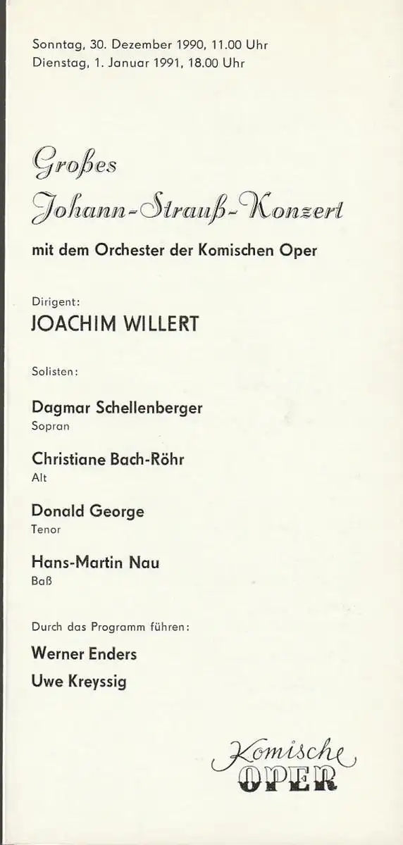 Komische Oper Berlin, G. Müller: Programmheft GROSSES JOHANN-STRAUSS (ß)-KONZERT mit dem Orchester der Komischen Oper Berlin 30. Dezember 1990 / 1. Januar 1991 Spielzeit 1990 / 91.