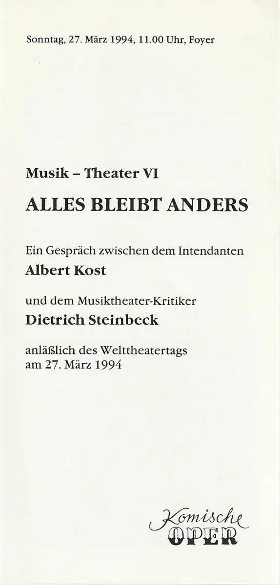 Komische Oper Berlin, Gerhard Müller: Programmheft MUSIK - THEATER VI ALLES BLEIBT ANDERS 27. März 1994 Foyer Komische Oper Spielzeit 1993 / 94.