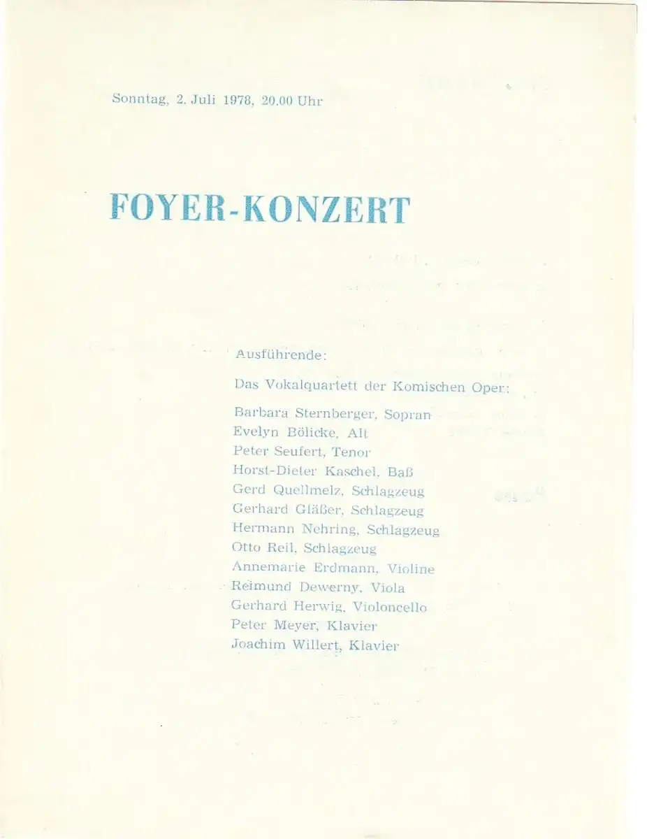 Titel: Programmheft FOYER - KONZERT 2. Juli 1978 Komische Oper Berlin Spielzeit 1977 / 78