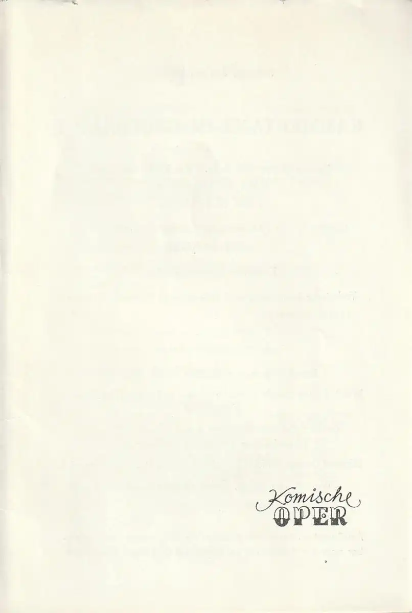 Kammergruppe des Balletts der Komischen Oper unter der Leitung von Tom Schilling. Musikalische Leitung: Gert Bahner. Kostüme: Eleonore Kleber. Instrumentalsolisten: Bernd Caspar und Reinhart Vogel, Klavier. Wilfried Bretschneider, Joachim Gruner, Walter Pietschmann, Schlagzeug. Gerhard Schmidt, Violine / Klaus Schwärsky, Viola / Hans-Joachim Scheitzbach, Violoncello. Berthold Grimm, Wilfried Lassahn, Peter Vogler, Violoncelli. Werner Tast, Flöte / Oskar Michallik, Klarinette. Tänzer: Hannelore Bey,Roland Gawlik, Barbara Pfundheller, Dagmar Pogrzeba, Hanne Wandke, Eleonora Shelesnowa, Jürgen Hohmann, Harald Wandke, u. a. Programm: Choreographie: Tom Schilling. DARIAN BOZIC: Concerto Grosso. PAUL DESSAU: Quattrodrama. HANNS EISLER: Dialog ( 14 Arten den Regen zu beschreiben ). BELA BARTOK: Sonate für 2 Klaviere und Schlagzeug - Theaterprogramm, Opernprogramm, Ballettprogramm, Musicalprogramm, Konzertprogramm, Theatermemorabilia, Programmhefte Sammlung, deutsche Theatergeschichte.