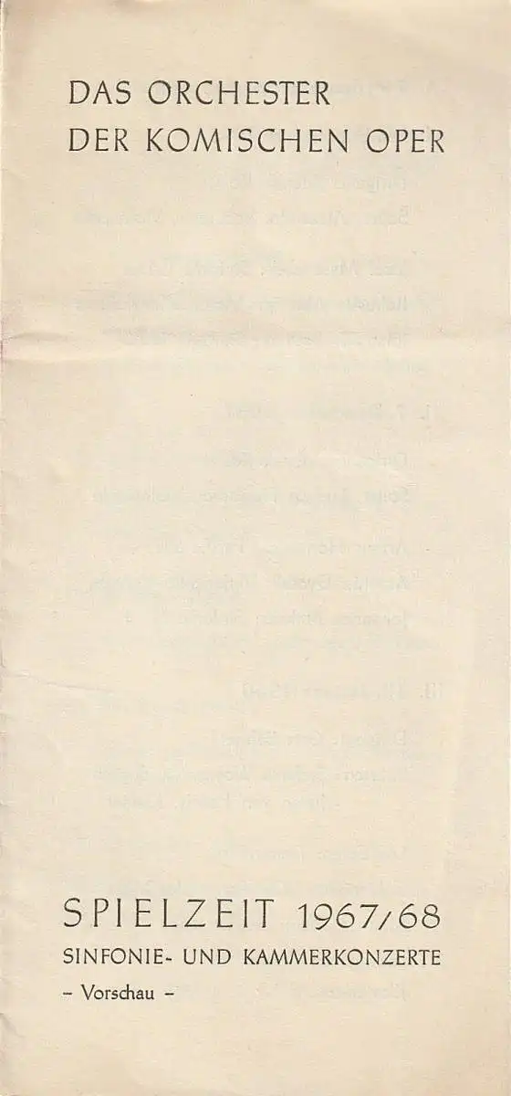 Titel: Programmheft SINFONIE - und KAMMERKONZERTE DES ORCHESTERS DER KOMISCHEN OPER 1967 / 68