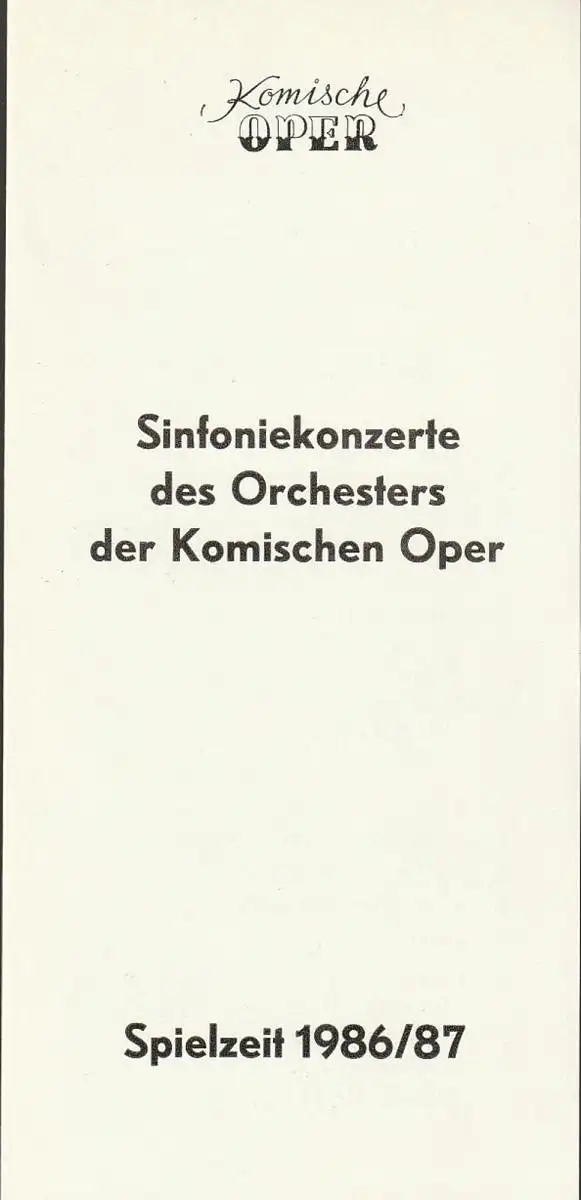 Titel: Programmheft SINFONIEKONZERTE DES ORCHESTERS DER KOMISCHEN OPER Spielzeit 1986 / 87