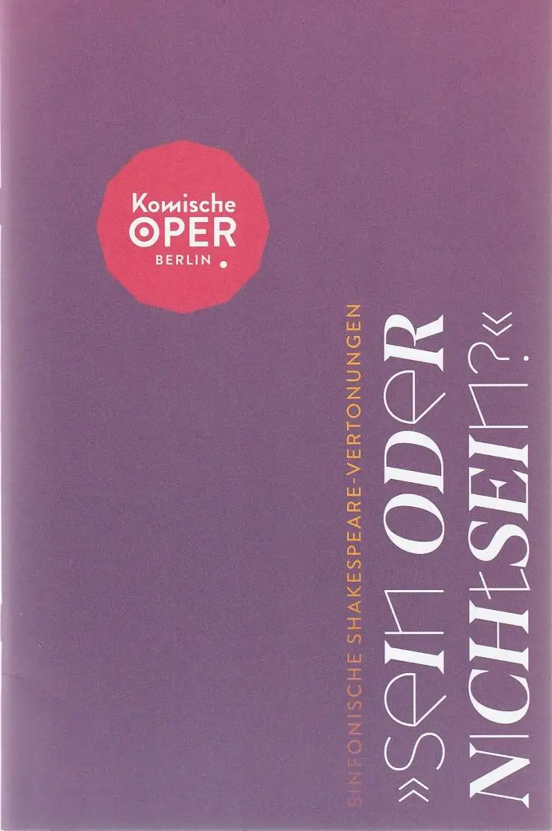Komische Oper Berlin, Susanne Moser, Philipp Bröking, Maximilian Hagemeyer: Programmheft SEIN ODER NICHTSEIN ? 21. April 2023.