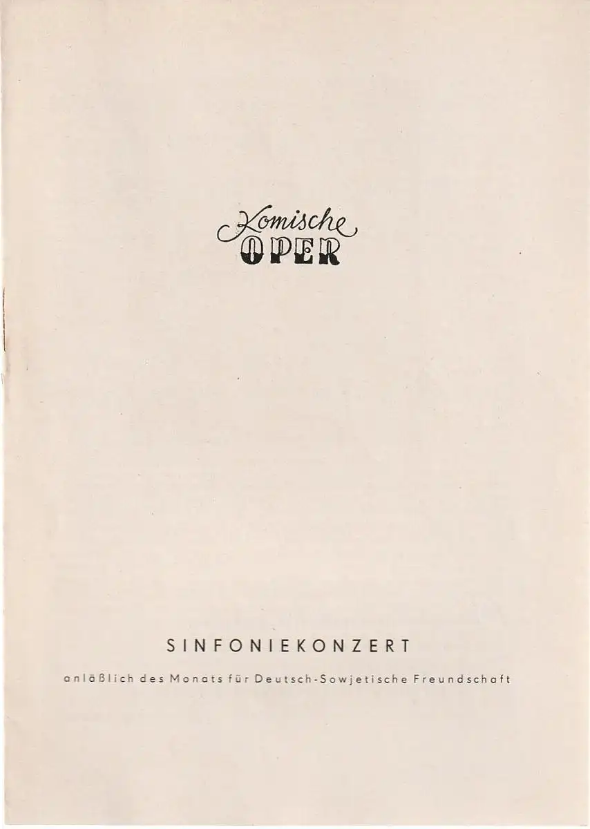 Komische Oper, Werner Otte, R. Mieke: Programmheft SINFONIEKONZERT 19. November 1952 Spielzeit 1952 / 53 anläßlich des Monats für Deutsch-Sowjetische Freundschaft.