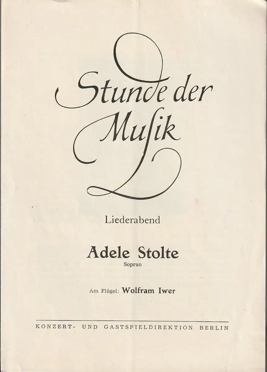 Konzert- und Gastspieldirektion Berlin: Programmheft STUNDE DER MUSIK 1964 LIEDERABEND ADELE STOLTE.