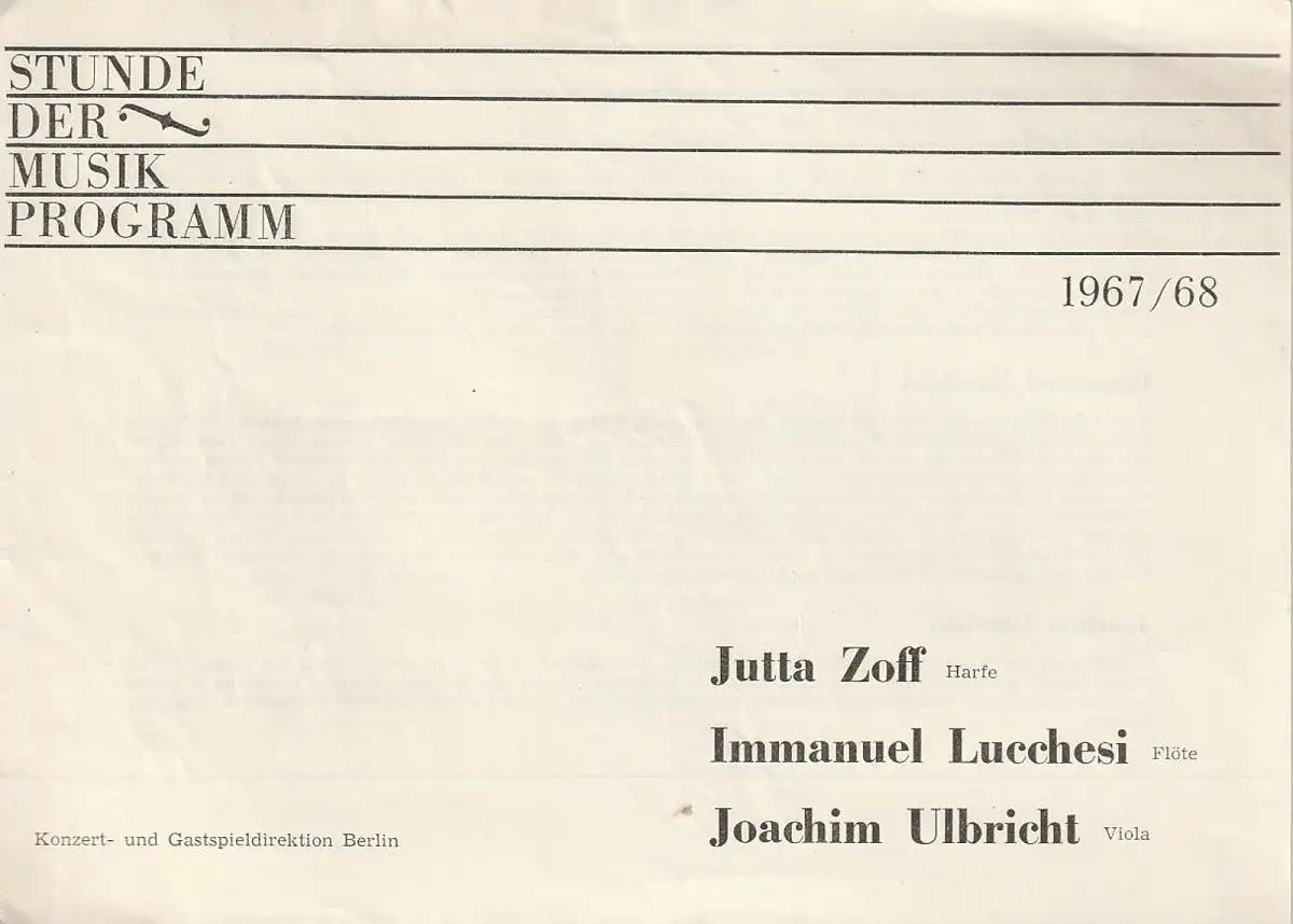 Titel: Programmheft STUNDE DER MUSIK 1967 / 68 JUTTA ZOFF / IMMANUEL LUCCHESI / JOACHIM ULBRICHT