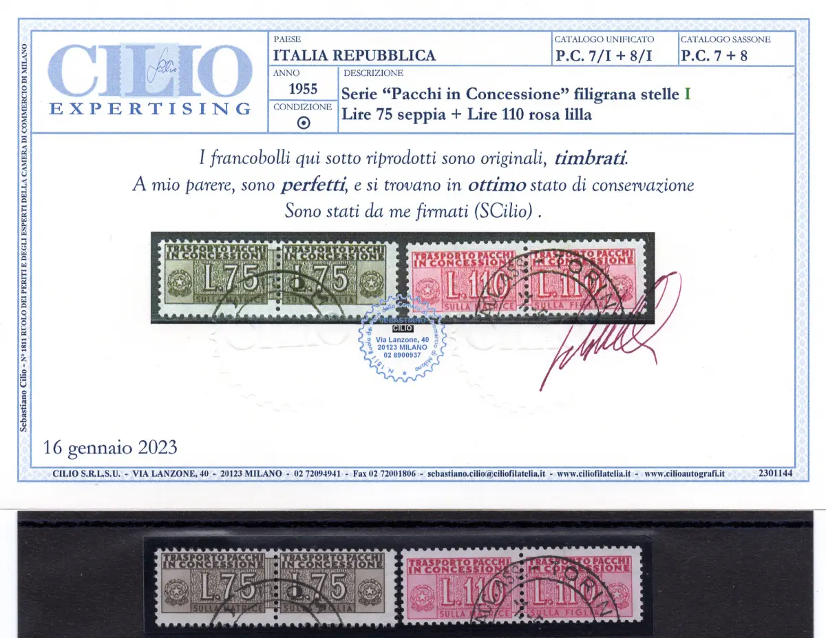 Gebraucht - Konzessionspakete L. 75 und 110 filigrane Sterne I (Nr. 9, 12) zwei gebrauchte Werte von sehr guter Qualität und normaler Zentrierung - Ungewöhnlich - Zert. Cilio Cod. 415/17