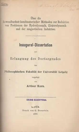 Korn, Arthur: Über die Anwendbarkeit kombinatorischer Methoden zur Reduktion von Problemen der Hydrodynamik, Elektrodynamik und der magnetischen Induktion.