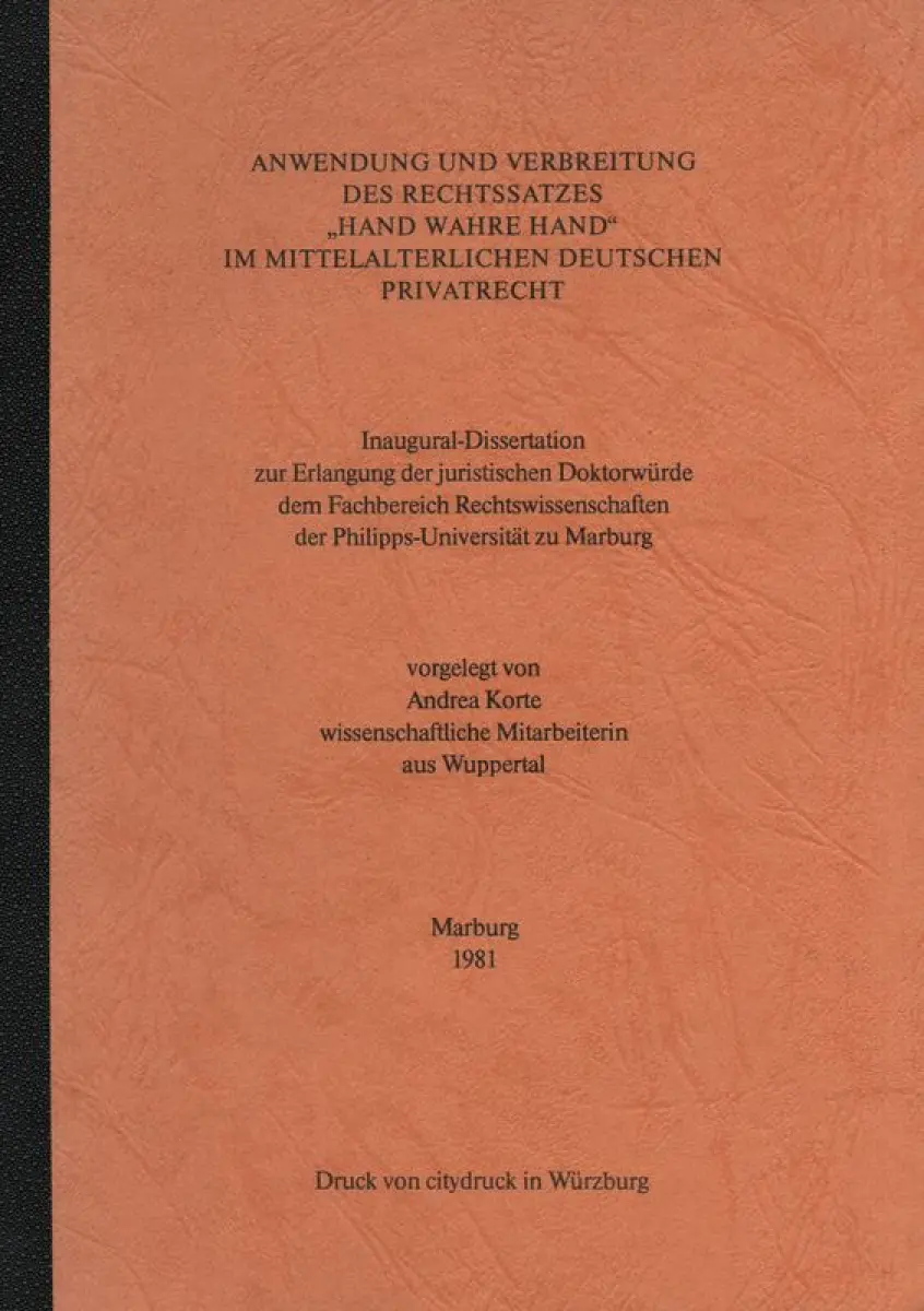Korte-Böger, Andrea: Anwendung und Verbreitung des Rechtssatzes "Hand wahre Hand" im mittelalterlichen deutschen Privatrecht. (Dissertation).