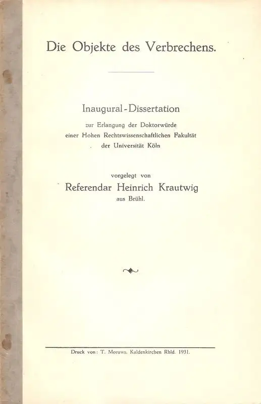 Krautwig, Heinrich: Die Objekte des Verbrechens. <Dissertation>.