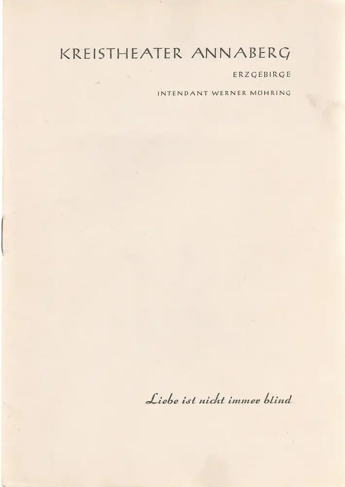 Kreistheater Annaberg Erzgebirge, Werner Möhring, Klaus Pastowsky: Programmheft Friedrich Gentz LIEBE IST NICHT IMMER BLIND Premiere 21. November 1959 Spielzeit 1959 / 60 Heft 7.