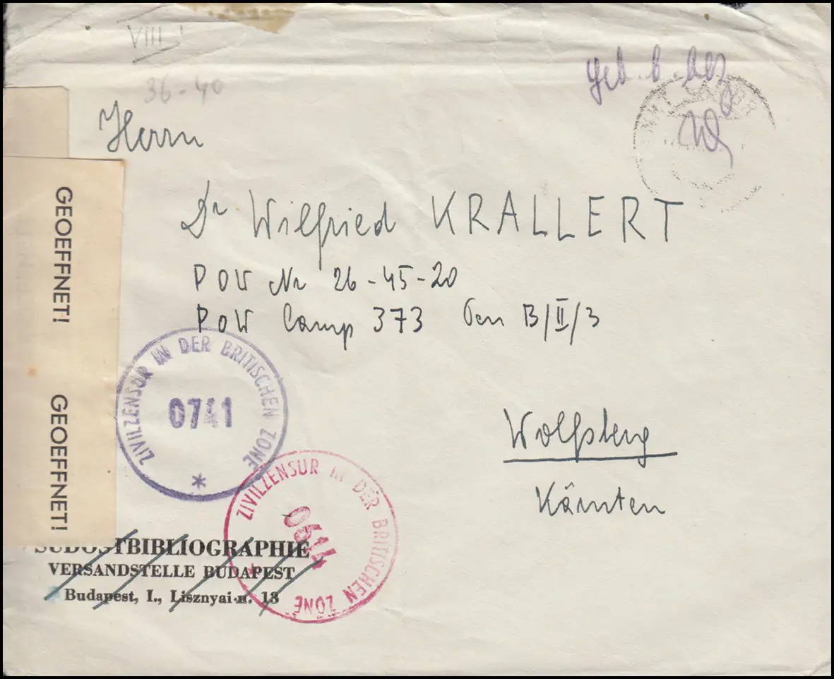 Poste de prisonniers de guerre Civilsur Zone britannique 0741 et 0614 Bf.dach Wolfsberg