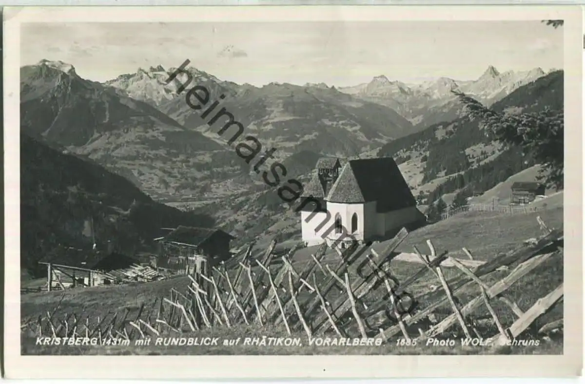 Kristberg mit Rundblick auf Rhätikon - Foto-Ansichtskarte - Verlag Photo Wolf Schruns (E90734) gel. 1939