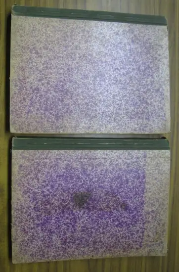 37 x 28,5 cm. 2 grüne Halbleinenbände der Zeit mit marmorierten Pappdeckeln. Der Rückenbezug ist unten und oben bis zu 2 cm aufgerissen. Gelenke und Deckel sind stärker berieben. Band I: Hinteres Innengelenk ist geplatzt. 880 Seiten in jeweils 3 Spalten gesetzt, durchgehend paginiert. Die äußersten Seitenränder sind gebräunt. Band 1: Seiten 485 - 486 fehlen zu zwei Dritteln (längs abgeschnitten). Die erste Seite jeder Ausgabe wurde am oberen Rand mit einem Papierstreifen versehen zum besseren Auffinden. Vereinzelt Anstreichungen mit Buntstift in Band I. Insgesamt noch guter Zustand