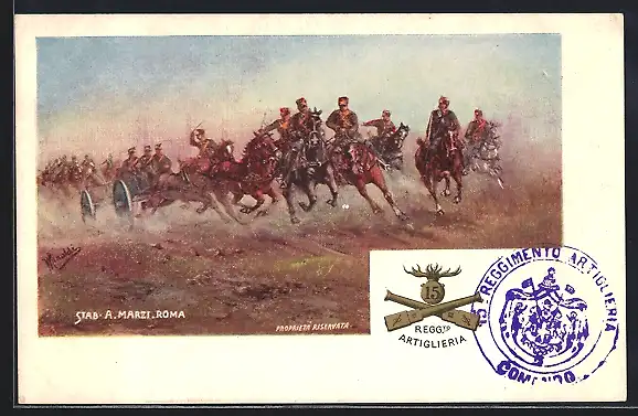 Künstler-AK 15. Reggimento Artiglieri, Artillerie des Regiment Nr. 15 auf dem Marsch