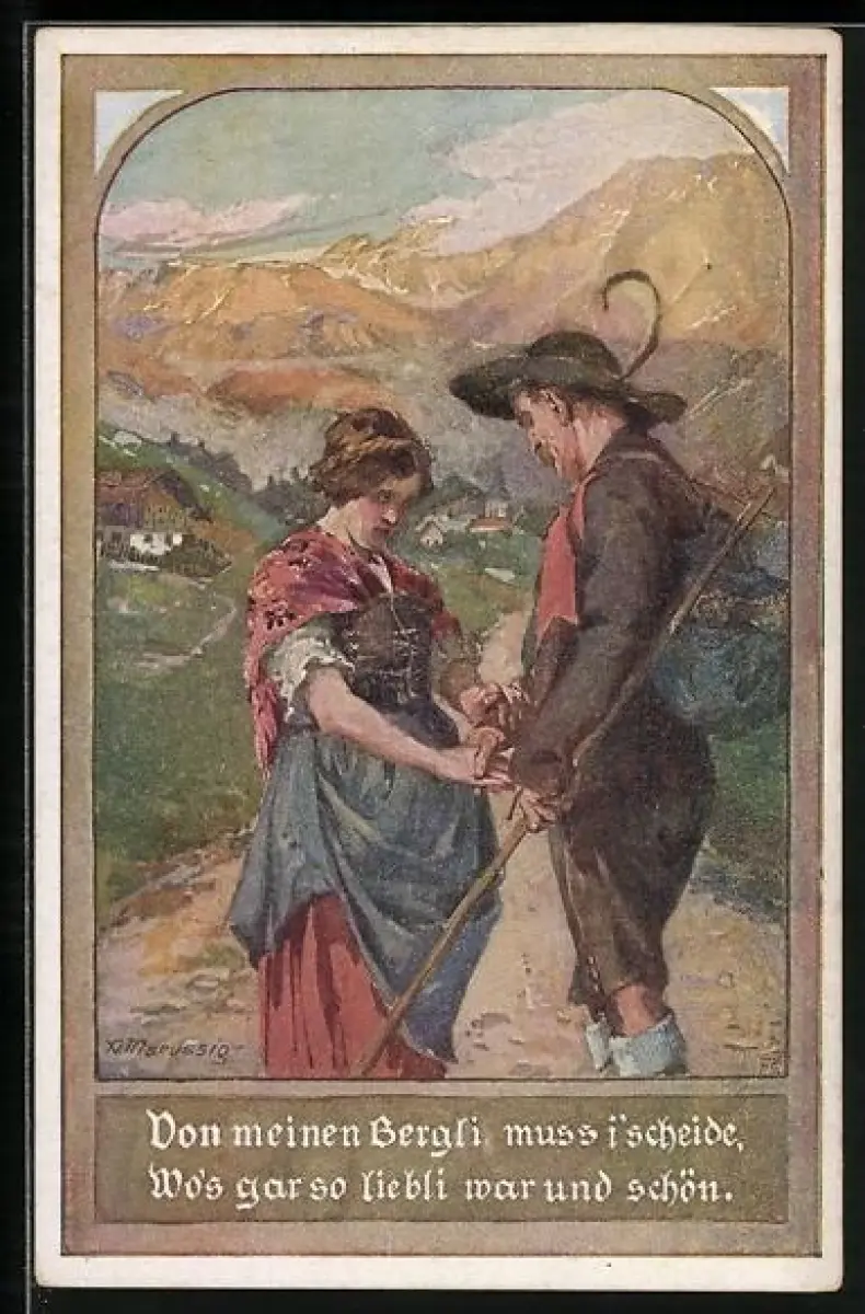 Künstler-AK A. Marussig: Wanderer sagt Lebewohl zu seiner Liebsten