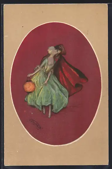 Künstler-AK A. Zandrino: Maskierter küsst Frau mit Laterne
