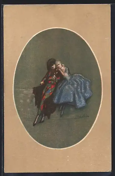 Künstler-AK A. Zandrino: Maskierter mit einer Frau