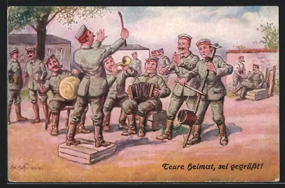 Künstler-AK Ad. Hoffmann: Teure Heimat sei gegrüsst, Soldaten beim musizieren