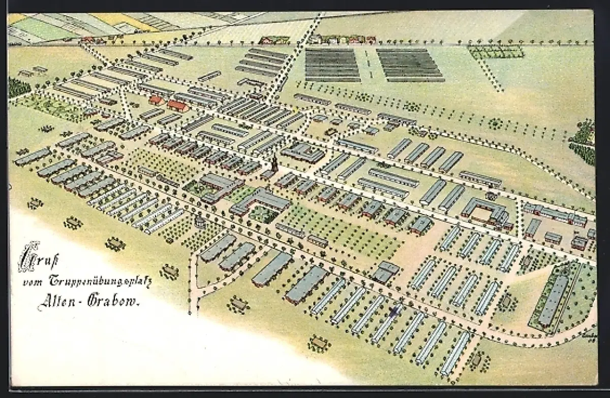 Künstler-AK Altengrabow, Truppenübungsplatz aus der Vogelschau