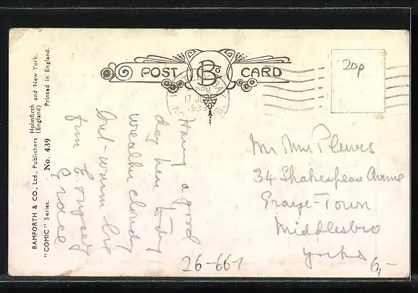 alte Ansichtskarte, gelaufen, Briefmarke entfernt, Eckknick re. oben, guter Zustand