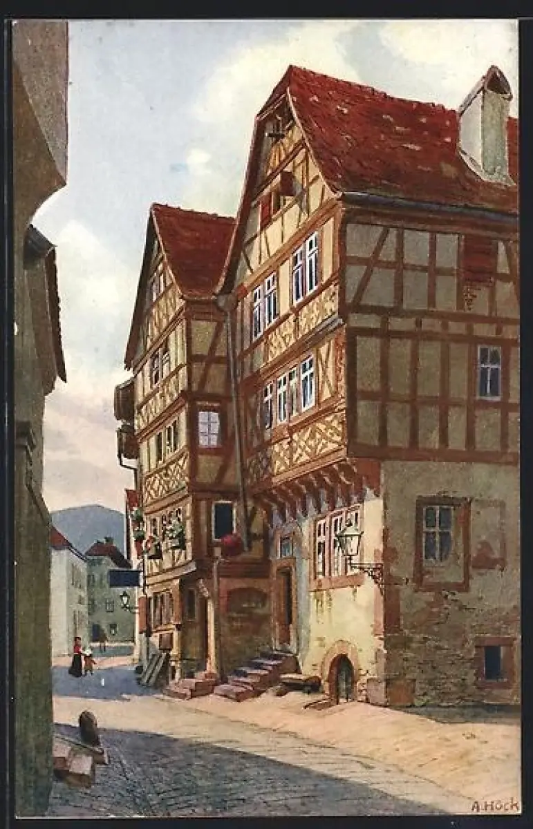 Künstler-AK Bad Orb, Alte Häuser in der Hauptstrasse