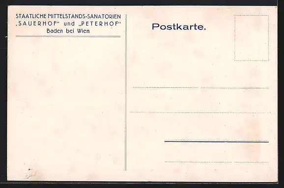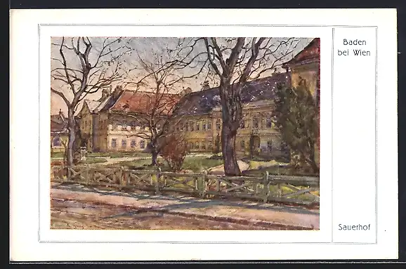 Künstler-AK Baden bei Wien, Mittelstands-Sanatorium Sauerhof