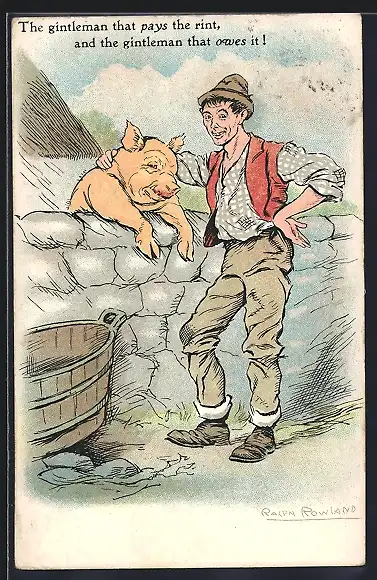 Künstler-AK Bauer legt einem Schwein den Arm um die Schultern
