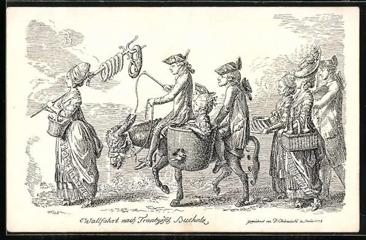 Künstler-AK Berlin, Wallfahrt nach Französisch Bucholz, Gruppe mit Esel