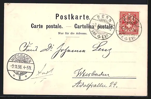 alte Ansichtskarte, gelaufen 1898, guter Zustand