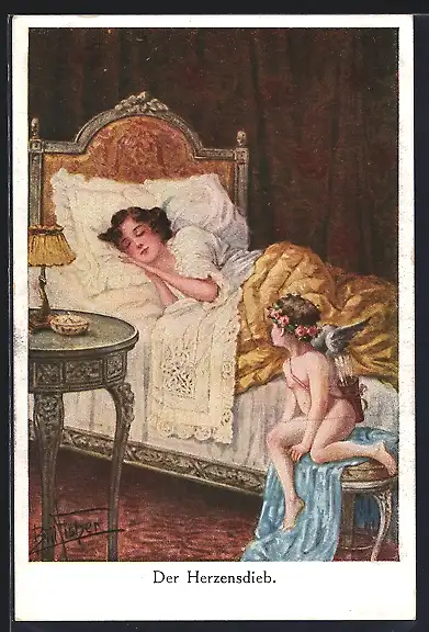 Künstler-AK Bill Fisher: Der Herzensdieb, Amor wartet auf seine Chance