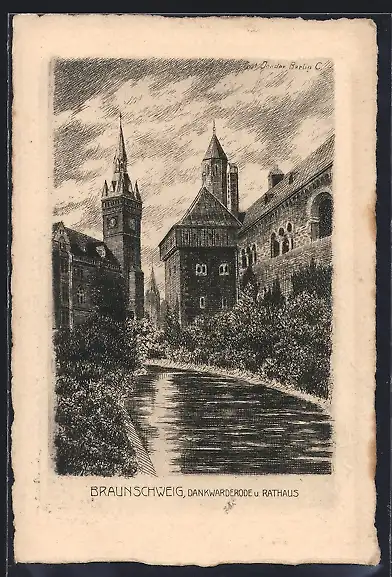 Künstler-AK Braunschweig, Dankwarderode u. Rathaus