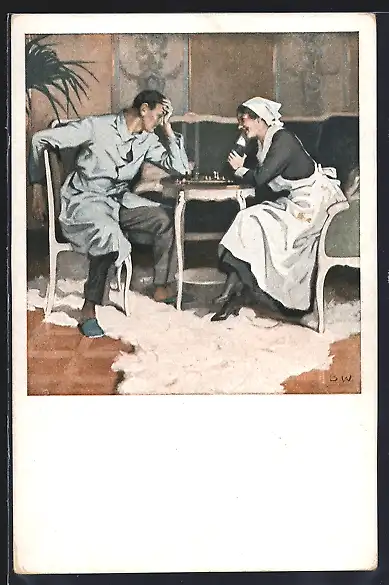 Künstler-AK Brynolf Wennerberg: Mann und Frau spielen Schach