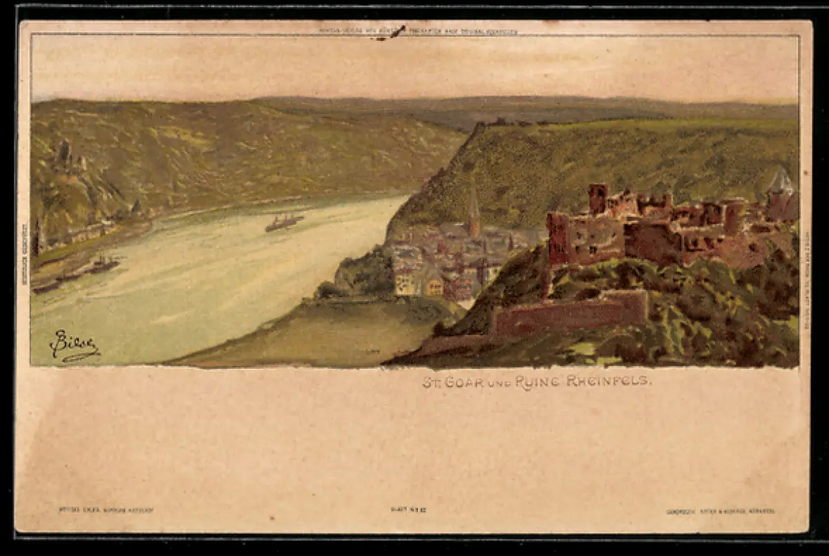 Künstler-AK C.Biese: St. Goar, Ruine Rheinfels