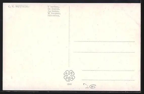 Künstler-AK Camil Vladislav Muttich: Im Harem, Bauchtänzerin räkelt sich rauchend auf Diwan