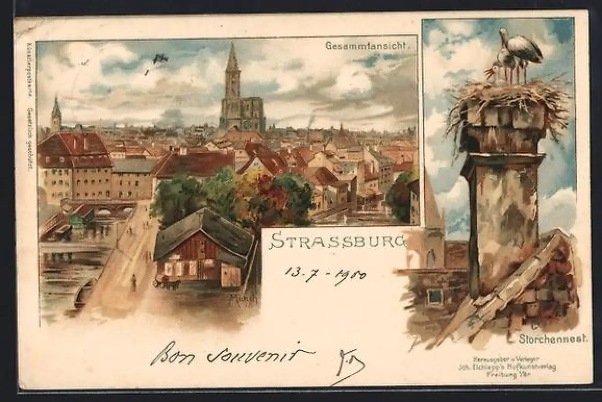 Künstler-AK Carl Münch: Strassburg, Storchenest, Gesamtansicht aus der Vogelschau