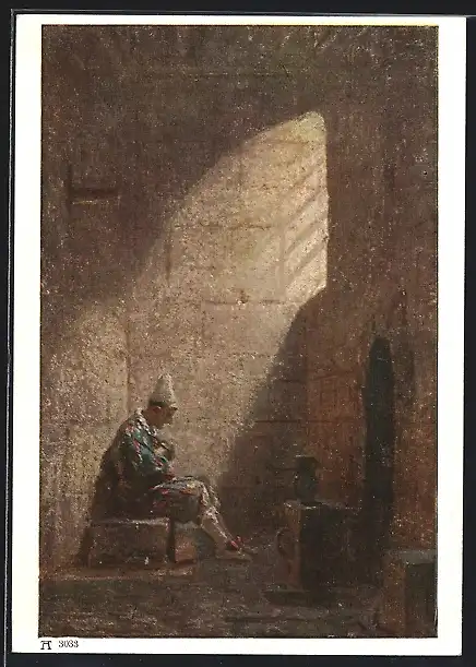 Künstler-AK Carl Spitzweg: Aschermittwoch, Verkleideter Narr im Kerker