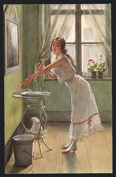 Künstler-AK Carl Zewy: Junge Frau bei der Morgentoilette