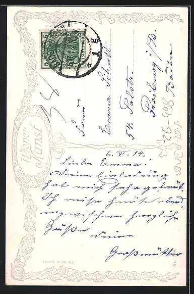 alte Ansichtskarte, gelaufen 1914, guter Zustand