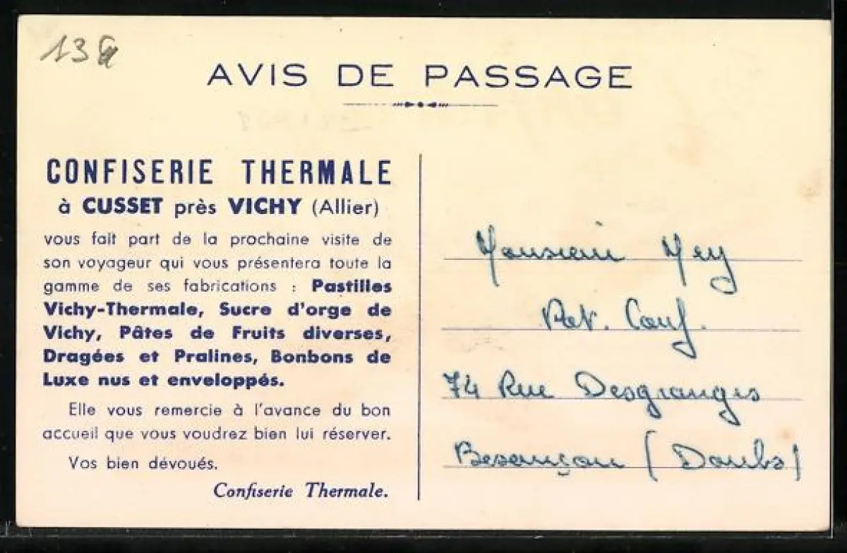 Künstler-AK Confiserie Thermale, Reklame Süssigkeiten