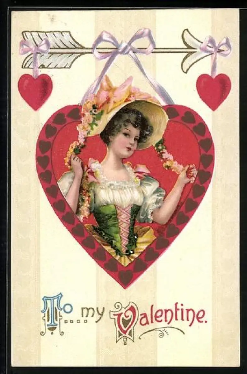 Künstler-AK Dame in einem herzförmigen Rahmen, To my Valentine