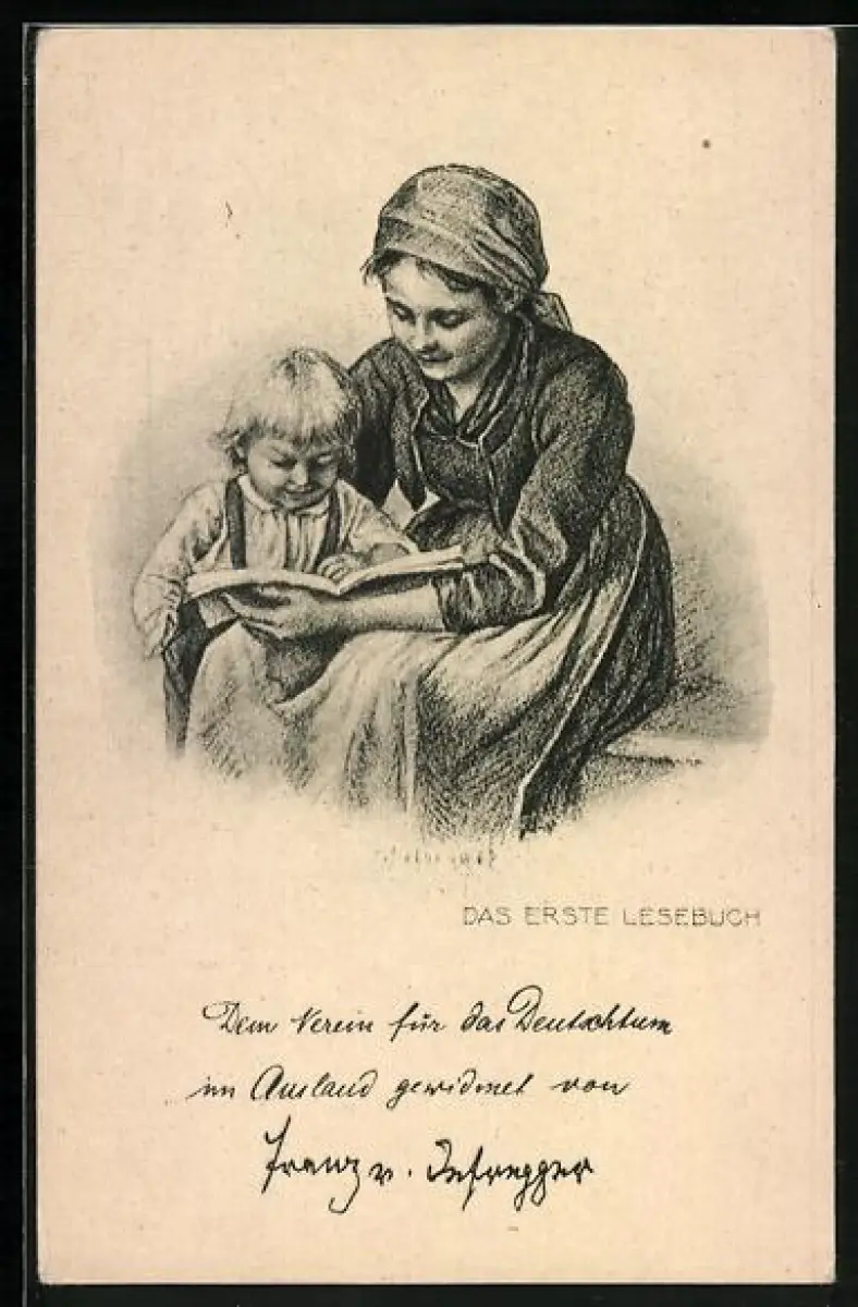 Künstler-AK Das erste Lesebuch, Mutter und Kind