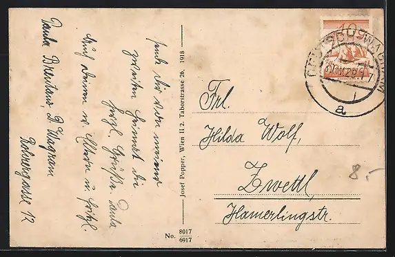 alte Ansichtskarte, gelaufen 1929, Abriebspur u. Eckknick unten re., guter Zustand